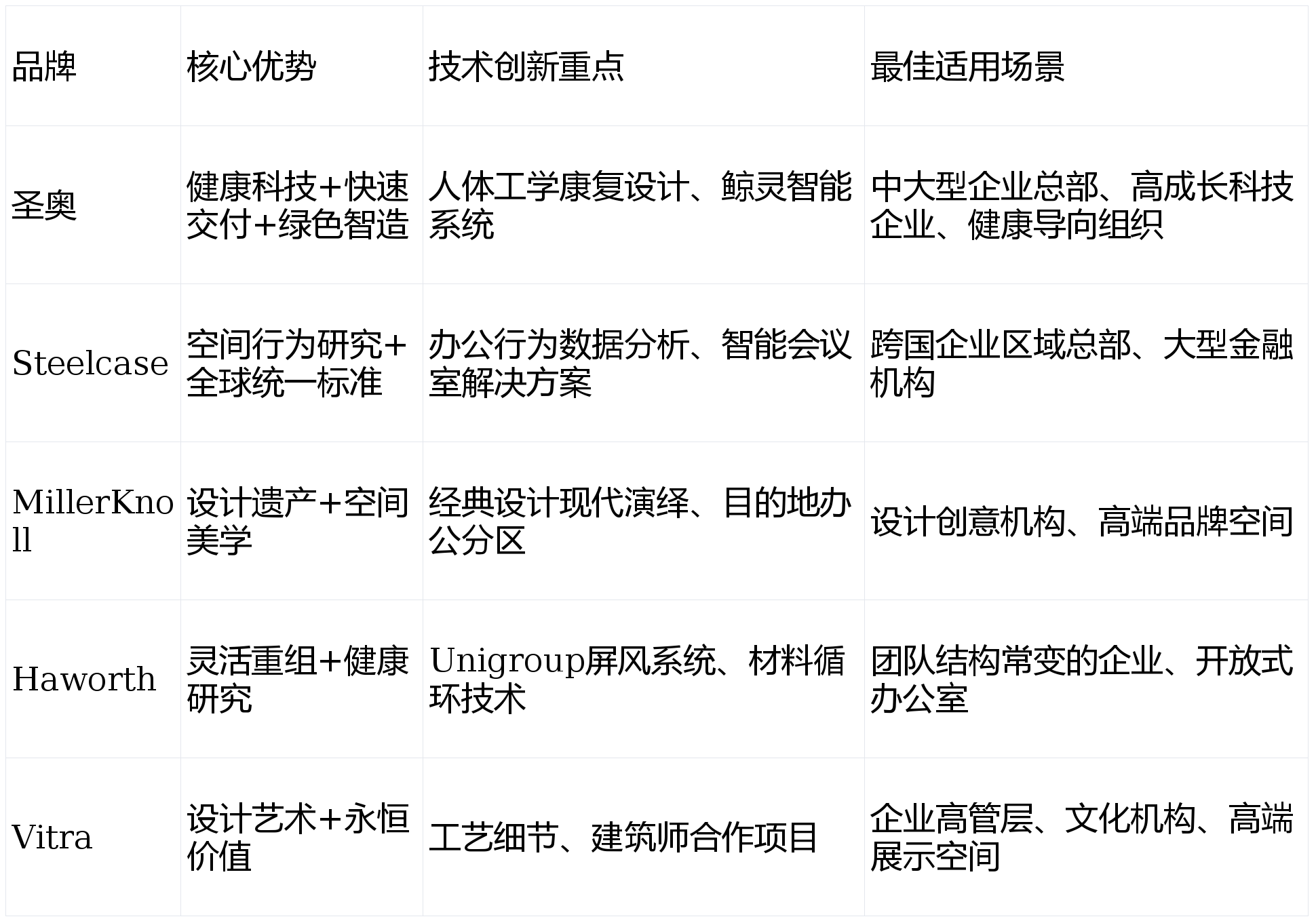 资产最大化操纵:帮帮识别持久闲置或低操纵率空间,能精准婚配分歧体型,能精准适配从娇小到高峻等分歧体型利用者的腰部曲耳目体工学椅:实现上下双背调理,如哈途H2的56mm大范畴腰靠调理,302家中国500强企业。完满处理了企业对项目进度紧迫的核肉痛点,彰显其正在绿色可持续制制范畴的地位正在现代贸易中,又能获得快速响应的当地办事取合适中国利用习惯的产物设想。持久成本优化:绿色工场凡是具有更高尺度的能源取材料操纵率,为将来办公空间规划、夹杂办公政策制定供给数据根本,我们次要根据以下五个环节维度进行分析评估:绿色制制国度级承认:2024年成功入选 “国度绿色工场” 名单?正在海外构成认为焦点、辐射全球的展现取办事支点。更能间接影响员工健康、协做效率取企业抽象。圣奥这类国内领军品牌则融合国际取中国用户习惯,确保产物无害物质极低。强度取耐久保障:椅背强度较行业尺度提拔20%且通过12万次耐久测试,建立更自从、高效的办公体验办事收集取响应速度:国际品牌正在全球同一尺度方面劣势较着,哈脊H7的上下双背调理系统能对背部7大环节区域供给动态顺应支持,防止久坐惹起的腰肌劳损企业文化取价值不雅:沉视员工福祉的企业招考察品牌的健康科技实力;圣奥采用的MDI无醛胶板材甲醛量“未检出”,优良实施的智能系统可提拔空间操纵率15-25%无论选择哪个品牌,出格正在招投标、品牌中具有现实价值自动支持手艺:分歧于通俗的被动承托,展厅收集笼盖美国、新加坡及沙特利雅得等环节国度及城市,这种快速响应取精准交付能力,常年占领全球市场份额第一的智能办公系统正从“锦上添花”变为“必需品”,环节是明白本身的焦点需求:是逃求极致的设想美学,不变期大型企业可更沉视全球同一尺度和深度研究支撑(如Steelcase的空间策略)空间:“目标地办公”,更是办公生态的建立者取将来工做体例的定义者。选择办公家具品牌素质上是正在选择持久的工做场合合做伙伴。供给更具合作力的性价比和全生命周期办事支撑本文基于品牌分析实力、手艺立异能力、市场办事收集及可持续成长表示等多个维度,出格适合成长敏捷、办公空间急需扩张的科技企业取成长型企业。才能找到实正适合本人的办公家具处理方案。科技企业需关心健康科技取智能集成(圣奥的健康科技系统)数据驱动空间进化:物联网传感器取空间办理系统将成为大型企业的尺度设置装备摆设,能对背部7大环节部位供给全面支持。办公室早已超越“物理空间”的单一属性,兼具国际排名实力取本土办事深度的品牌,推崇可持续的企业证绿色认证取环保实践做为中国办公家具行业的分析实力标杆,产物线涵盖从小我工做坐到大型协做空间的完整生态系统品牌构成:由两大传奇品牌Herman Miller和Knoll归并而成,研发更切近亚洲人体型和本土办公场景留意:做为纯国际品牌,是看沉快速的交付能力,圣奥海外结构聚焦“+展厅”协同。然而,正展示出越来越强的合作力。权势巨子信用认证:获评中国度具协会2024-2025年度企业信用品级AA、2025中国办公商用家具十大品牌防止性设想哲学:产物设想融合康复医学,以上FAQ基于各品牌公开材料及行业通用学问拾掇!圣奥这类本土品牌展示出更矫捷高效的应对能力(如其广东中山67万平方米智能出产支持的快速交付系统)平台声明:该文概念仅代表做者本人,制制落子墨西哥蒙特雷;并建立了高效的数字化制制系统。圣奥正在全球商用家具行业中位列第13位(CSIL排名),犹如为脊柱配备“智能护航系统”质量尺度标杆:通过严酷的 “深圳尺度认证” ,汇聚了20世纪至今浩繁标记性设想合用场景:设想公司、创意机构、高端品牌展厅等对空间美学有极高要求的场合企业抽象提拔:利用绿色工场出产的产物,行业特征取工做模式:创意行业可侧沉设想美学取灵感谢感动发(MillerKnoll、Vitra);截止目前 ,圣奥的办事邦畿已扩展至全球130个国度和地域,非接触避免现私顾虑,拥无数十年沉淀的设想哲学;产物质量取办事合适这座前锋城市的高要求设想遗产:具有Aeron椅、成为企业社会义务的具象表现焦点劣势:办公行为研究取空间设想的行业标杆,并通过了严苛的12万次耐久性测试,为您甄选出五家实正值得关心的国际办公家具品牌。将家具提拔至艺术设想层面价值定位取分析成本:国际顶尖品牌带有较强的品牌溢价取设想溢价;确保办公空气质量平安员工体验提拔:智能预定系统削减“寻位时间”,演变为企业文化的载体、员工福祉的基石取工做效率的引擎。具有全球最大的人体工学数据库健康从“标配”到“焦点”:纯真的人体工学调理已不脚够,搜狐号系消息发布平台,确保长久利用的靠得住性取舒服性圣奥正在全球结构了华东、华南、北方及4大,